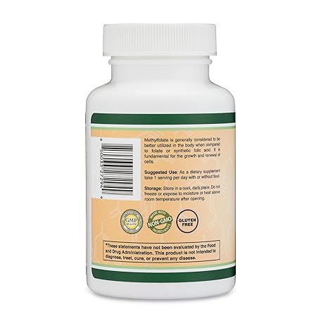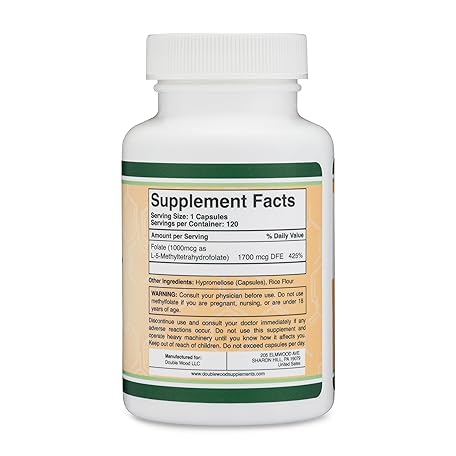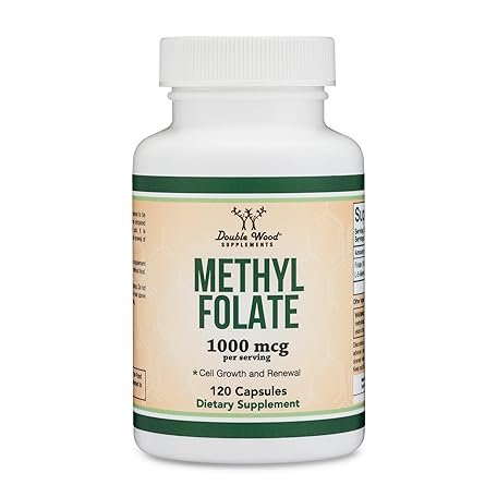 Thông tin sản phẩm Methylfolate 1,000mcg, 120 Capsules (Third Party Tested Methyl Folate Supplement) Methylated Folate is a More Active Form of Folate Than Folic Acid (Non-GMO, Vegan Safe) by Double Wood