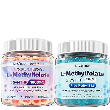 MethylFolate 15mg, L-Methylfolate 1000 mcg + Methyl B12 Gummies, 3Pack
