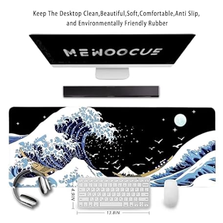 Sản phẩm MEWOOCUE® Gaming Mouse Pad for Desk,Large Wave Mousepad Laptop,Black Japanese Anime Mouse Mat,Long XXL Waterproof Keyboard Pads,Big Non-Slip Mousepads for Game Office Home(31.5 x 11.9 in) đang được bán với giá ưu đãi là $16.3282 tại nước Mỹ.