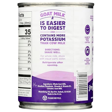 Sản phẩm Meyenberg Evaporated Goat Milk, Vitamin D, 12 Ounce (Pack of 8) đang được bán với giá ưu đãi là $56.68 tại nước Mỹ.