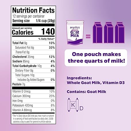 Thông tin sản phẩm Meyenberg Whole Powdered Goat Milk, 12oz pouch, Kosher, Gluten Free, Vitamin D, 6pk