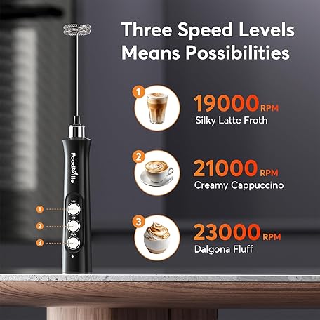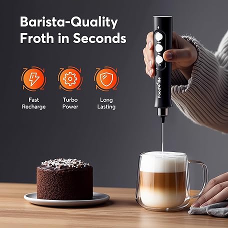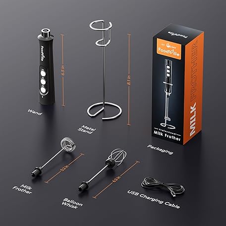 Thương hiệu FoodVille là cái tên nổi tiếng được rất nhiều khách hàng trên thế giới chọn lựa. Với kiểu dáng đẹp mắt, sang trọng, sản phẩm MF02 Rechargeable Milk Frother Handheld Foam Maker with Stainless Whisk for Cappuccino, Latte, Bulletproof Coffee, Keto Diet, Protein Powder, Matcha là sự lựa chọn hoàn hảo nếu bạn đang tìm mua một món cho riêng mình.