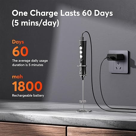 Thông tin sản phẩm MF02 Rechargeable Milk Frother Handheld Foam Maker with Stainless Whisk for Cappuccino, Latte, Bulletproof Coffee, Keto Diet, Protein Powder, Matcha