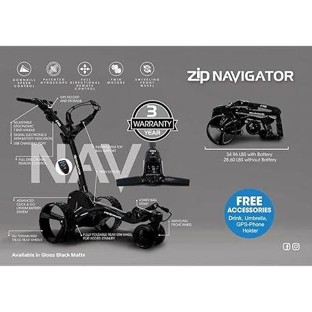 MGI Zip Navigator Electric Golf Cart - 36 Hole Battery - Remote Control - (Drink, Umbrella, & GPS Phone)