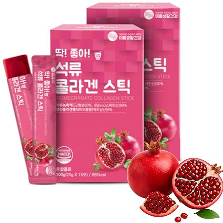 Mi-ppeum Pomegranate Collagen Jelly Stick 20g 2 Pack - 15 Sticks - 1600mg Low Molecular Fish Collagen for Skin & Hydration - Tangy Pomegranate Flavor, Portable - Korean Collagen Jelly - 콜라겐 젤리스틱