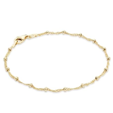 Miabella Italian Solid 925 Sterling Silver, 18Kt Gold Plated Singapore Bead Chain Station Bracelet for Women, Made in Italy
