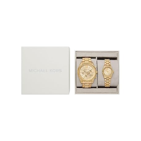 Michael Kors Lexington Three-Hand Gold-Tone Stainless Steel Bracelet Watch Gift Set (Model: MK4950SET)