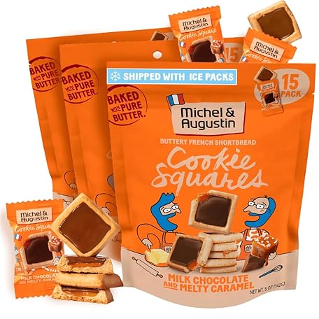 Thông tin sản phẩm Michel et Augustin Cookies, Individually Wrapped Snacks, 3 Pack, Gourmet Milk Chocolate & Caramel Shortbread, 15 French Butter Cookies per bag