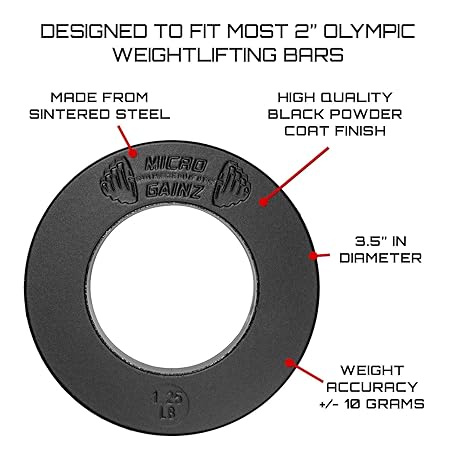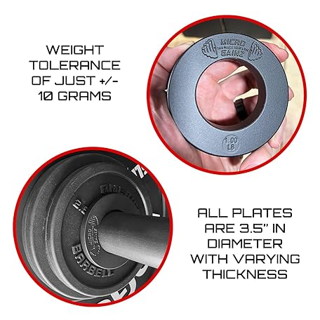 Thông tin sản phẩm Micro Gainz Olympic Fractional Weight Plates Set, 10 Piece Olympic Weight Plates Set with Bag, Designed for Olympic Barbells for Strength Training and Micro Loading, Made in USA
