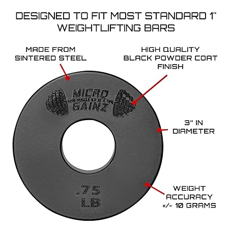Thông tin sản phẩm Micro Gainz Standard 1-Inch Center Hole Weight Plates, Set of 2 Black Fractional Plates Choose Set (.25LB-1.25LB), Designed for Standard 1-inch Barbells & Dumbbells, Made In USA