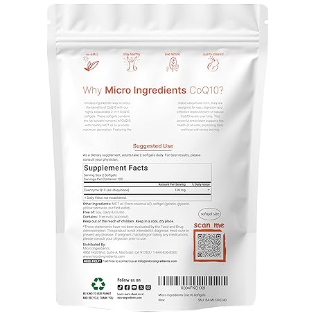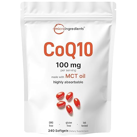 Micro Ingredients CoQ10 100mg Per Serving | 240 Softgels Made with Coconut MCT Oil | High Absorption Coenzyme Q10 as Ubiquinone | Antioxidant Support for Heart & Energy Health | Non-GMO