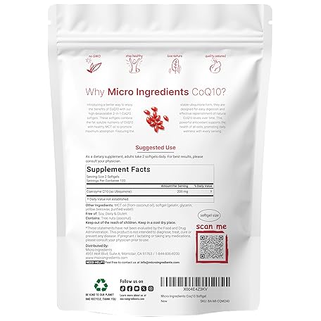 Sản phẩm Micro Ingredients CoQ10 200mg Per Serving | 240 Softgels with Coconut MCT Oil | High Absorption Coenzyme Q10 as Ubiquinone | Antioxidant Support for Heart & Energy Health | Non-GMO đang được bán với giá ưu đãi là $29.4191 tại nước Mỹ.