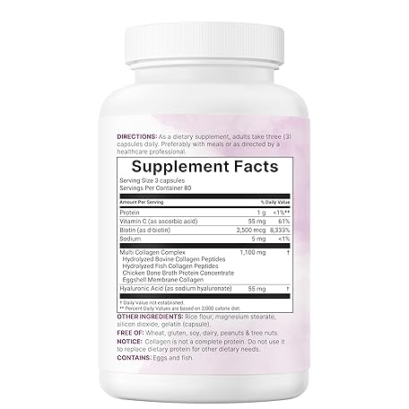 Thông tin sản phẩm Micro Ingredients Multi Collagen Pills for Women & Men, 240 Capsules | Type I, II, III, V, X | Hydrolyzed Peptides with Biotin, Hyaluronic Acid, & Fat Soluble Vitamin C Complex | Non-GMO, Filler Free