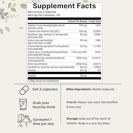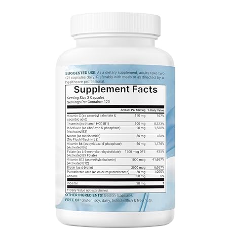 Thông tin sản phẩm Micro Ingredients Pure Methylated B Complex, 240 Capsules | 11-in-1 Formula with Methylfolate, B12, Thiamin, Inositol, Choline, & Fat Soluble Vitamin C | Clean Ingredients Without Fillers | Non-GMO