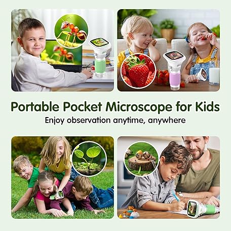 • Microscope for Kids, EDCREATY 200X-1000X Portable Pocket Handheld Microscope, 2.4 High-Definition Screen, 200W Pixels for Birthday Christmas Holiday Toys Gifts for 5 6 7 8 9 10 11 12 Kids