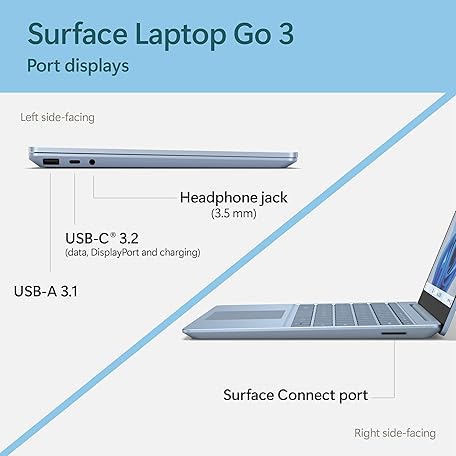Thông tin sản phẩm Microsoft Surface Laptop Go 3 (2023) - 12.4" Touchscreen, Thin & Lightweight, Intel Core i5, 8GB RAM, 256GB SSD SSD, with Windows 11, Ice Blue Color Microsoft Copilot