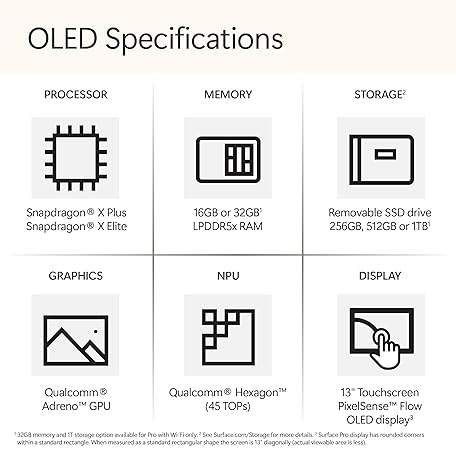Thông tin sản phẩm Microsoft Surface Pro 2-in-1 Laptop/Tablet (2024), Windows 11 Copilot+ PC, 13" Touchscreen OLED Display, Snapdragon X Elite (12 Core), 16GB RAM, 256GB Storage, Black, Amazon Exclusive