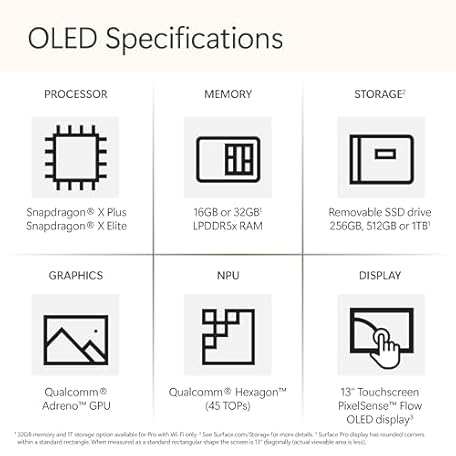 Thông tin sản phẩm Microsoft Surface Pro 2-in-1 Laptop/Tablet (2024), Windows 11 Copilot+ PC, 13" Touchscreen OLED Display, Snapdragon X Elite (12 Core), 32GB RAM, 1TB Storage, Platinum