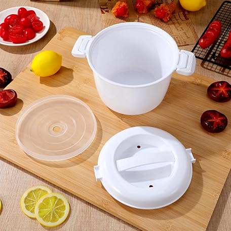 Thông tin sản phẩm Microwave Rice Cooker Steamer, Round Microwave Food Container for Vegetables, Safe as Mixing and Serving Bowls, Micro Rice Pasta Cooker - Dishwasher Safe | 1.8 Liter/7.5 Cup