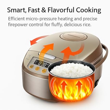Sản phẩm Midea Micom Rice Cooker, Digital Multi-Functional Ricer Cooker/Steamer, Brown Rice, Slow Cooker (3L/5.5Cup, Champange) MB-FS3017 đang được bán với giá ưu đãi là $129.71 tại nước Mỹ.