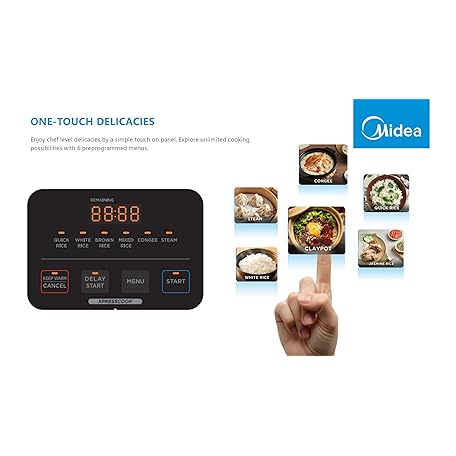 Sản phẩm Midea Rice Cooker Slow Cooker Multi Cooker 10 Cup with Steamer Basket For Rice Food Vegetable Egg Automatic Keep Warm LED Digital Control (Black) đang được bán với giá ưu đãi là $107.8991 tại nước Mỹ.