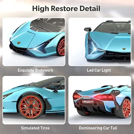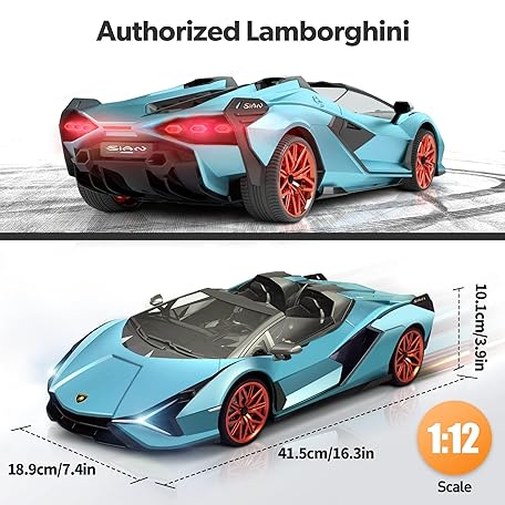 Thông tin sản phẩm MIEBELY Lamborghini Remote Control Car, 1:12 Scale Lambo Toy Car 7.4V 900mAh Officially Licensed 12Km/h Fast Rc Cars with Led Light 2.4Ghz Model Car for Adults Boys Girls Birthday Ideas Gift - Blue