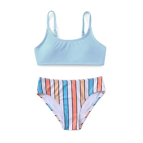 • MIENOE Teen Girls' Swimsuits Two-Piece V-Neck Bikini Adjustable Shoulder Straps Swimsuit Kids Bikini with Chest Pad