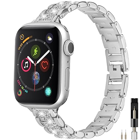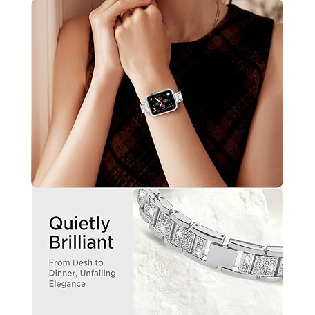 Sản phẩm Miimall for Apple Watch Bands 38mm 40mm 41mm 42mm 44mm 45mm 46mm 49mm for iWatch Series 11 10 9 8 7 6 5 4 3 2 1 SE Ultra, Slim Sparkling Diamonds Bling Jewelry Metal Women Strap for Apple Watch Band đang được bán với giá ưu đãi là $14.7041 tại nước Mỹ.