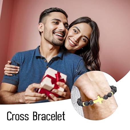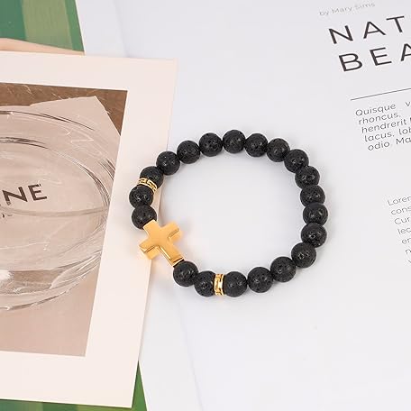 Sản phẩm MILAKOO 8mm Natural Stone Lava Bracelet Diffuser Essential Oil Wristband with Stainless Steel Cross đang được bán với giá ưu đãi là $14.1591 tại nước Mỹ.