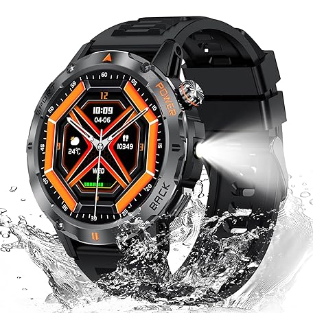 Military Smart Watch for Men, (Answer/Make Call) Fitness Smart Watch with Flashlight Compatible for Android & iPhone Waterproof with Blood Oxygen/HeartRate/Sleep/120+ Sport Modes (Black)