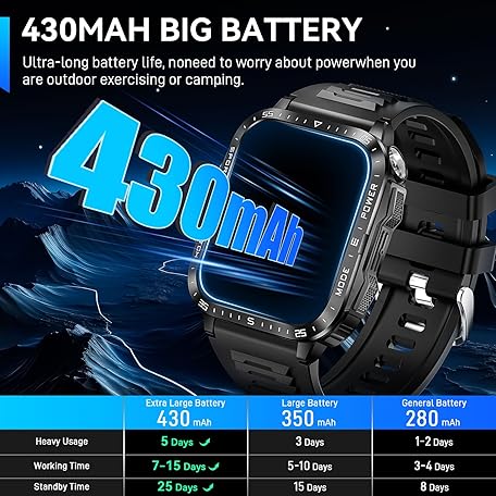 Military Smart Watch for Men with LED Flashlight Watch 2.0'' Big Screen Tactical Smartwatch 430mAh Big Battery Fitness Tracker with Heart Rate Sleep Monitor for iPhone Android