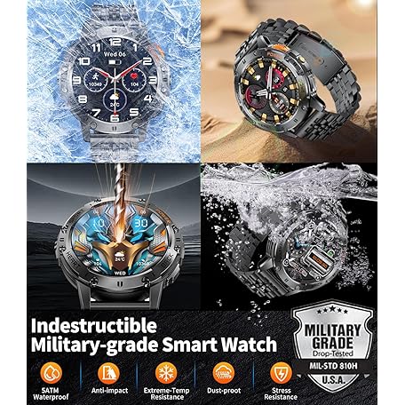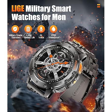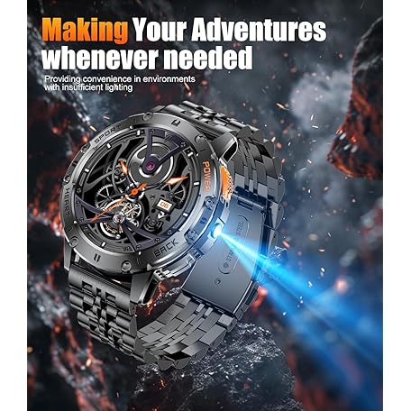 Military Smart Watches for Men with LED Flashlight,3 Straps,1,43'' AMOLED Smartwatch for Men with 530mAh Battery,5ATM Waterproof Fitness Tracker Smart Watch with Answer/Make Call iOS Android