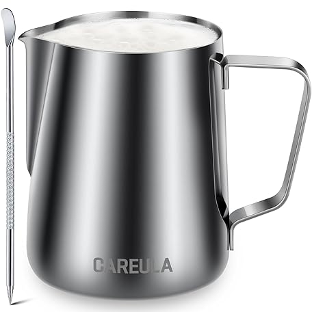 Thương hiệu Careula là cái tên nổi tiếng được rất nhiều khách hàng trên thế giới chọn lựa. Với kiểu dáng đẹp mắt, sang trọng, sản phẩm Milk Frothing Pitcher, 12oz Stainless Steel Milk Frother Cup Steaming Pitcher, Coffee Bar Cappuccino Espresso Machine Accessories Barista Tools, Metal Pitcher Milk Jug with Decorating Latte Art Pen là sự lựa chọn hoàn hảo nếu bạn đang tìm mua một món cho riêng mình.