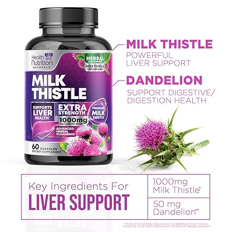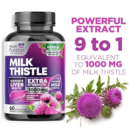 Sản phẩm Milk Thistle Supplement 1000mg Equivalent - Liver Health Support with Dandelion Root & Silymarin Marianum, 9:1 Extract Liver Cleanse Detox & Repair - Nature's Milk Thistle Supplements - 60 Capsules đang được bán với giá ưu đãi là $7.9788 tại nước Mỹ.