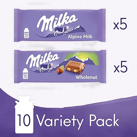 Thông tin sản phẩm Milka European Chocolate Bars Variety Pack, Alpine Milk Chocolate & Wholenut Hazelnut Chocolate, 10 - 3.52 oz Bars
