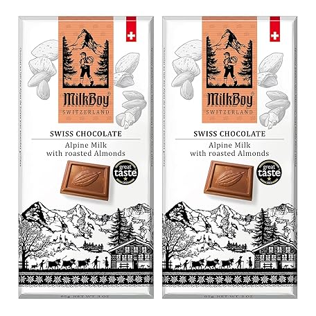 Sản phẩm Milkboy Swiss Chocolates Almond Chocolate Bars - Premium Swiss Alpine Milk Chocolate with Almonds - All Natural, Gluten-Free, Non-GMO - Made in Switzerland, Kosher - 3 oz, Pack 2 đang được bán với giá ưu đãi là $15.2382 tại nước Mỹ.