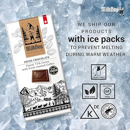 Thông tin sản phẩm Milkboy Swiss Chocolates Dark Chocolates with Coffee - 72% Cocoa - Gourmet Dark Chocolate Bars - Made in Switzerland - Gluten Free - Sustainably Farmed - Non GMO - Vegan - 3 oz, Pack 2