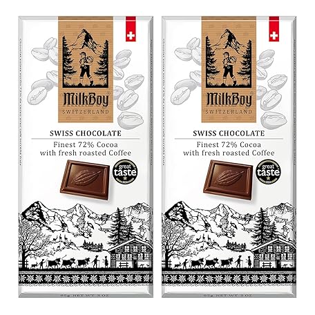 Sản phẩm Milkboy Swiss Chocolates Dark Chocolates with Coffee - 72% Cocoa - Gourmet Dark Chocolate Bars - Made in Switzerland - Gluten Free - Sustainably Farmed - Non GMO - Vegan - 3 oz, Pack 2 đang được bán với giá ưu đãi là $15.2382 tại nước Mỹ.
