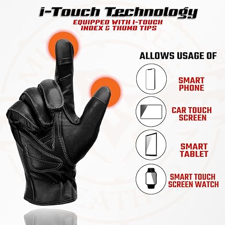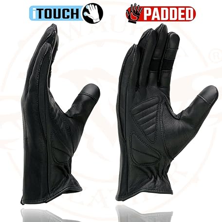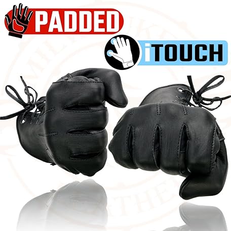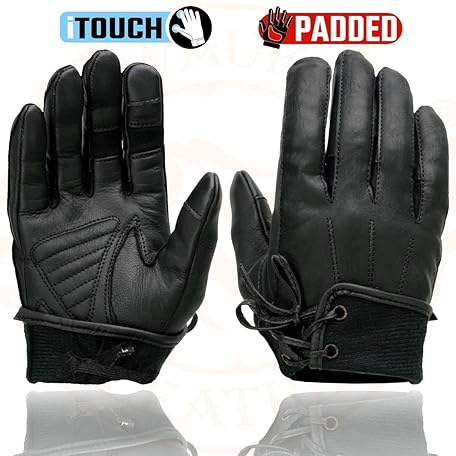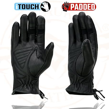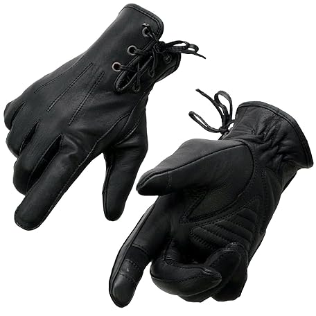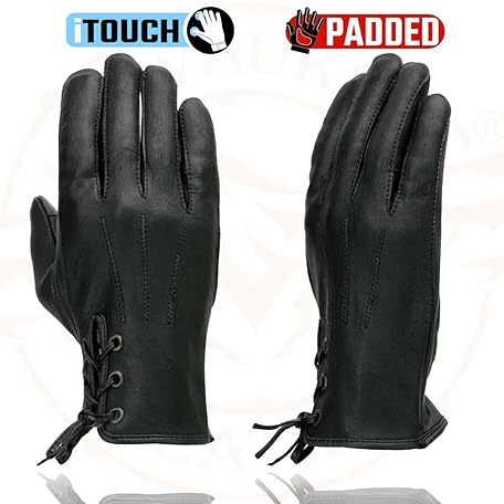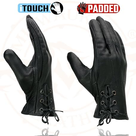 • Milwaukee Leather MG7770 Women's Black Leather ’I - Touchscreen Compatible’ Laced Wrist Motorcycle Hand Gloves W/Gel Palm