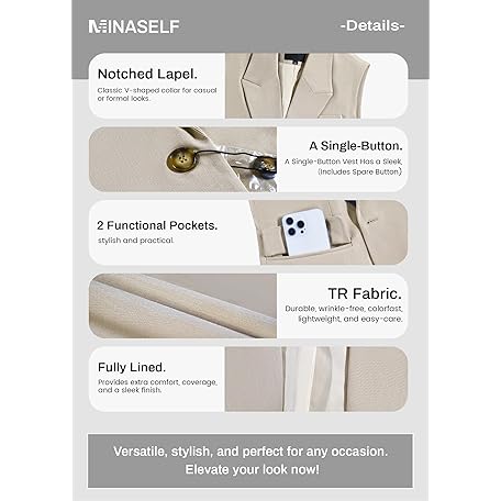 Thương hiệu Mina Self là cái tên nổi tiếng được rất nhiều khách hàng trên thế giới chọn lựa. Với kiểu dáng đẹp mắt, sang trọng, sản phẩm Mina Self 2025 Winter Women's Sleeveless Vest Blazer - Fully Lined Warm Fashion Casual Work Office Outerwear with Pockets là sự lựa chọn hoàn hảo nếu bạn đang tìm mua một món cho riêng mình.