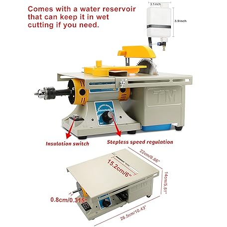 Sản phẩm Mingfuxin Mini Table Saw Rock, Lapidary Equipment DIY Jewelry Polishing Bench Buffer Grinding Machine, 0-10000r/min with Flexible Shaft for Home Woodworking Carving Hobbies đang được bán với giá ưu đãi là $174.3891 tại nước Mỹ.