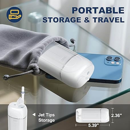 Thông tin sản phẩm Mini Cordless Water Flosser for Teeth, Portable 5 Modes Travel Dental Water Flosser, 36-Day Battery Life, Detachable Tank, IPX7 Waterproof Oral Irrigator for Brace, Sensitive Gum, Implant