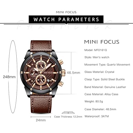 Thương hiệu MF MINI FOCUS là cái tên nổi tiếng được rất nhiều khách hàng trên thế giới chọn lựa. Với kiểu dáng đẹp mắt, sang trọng, sản phẩm MINI Focus Men Watches Business Casual Wrist Watches (Multifunction/Waterproof/Luminous/Calendar) Genuine Leather Band Fashion Watch for Men là sự lựa chọn hoàn hảo nếu bạn đang tìm mua một món cho riêng mình.