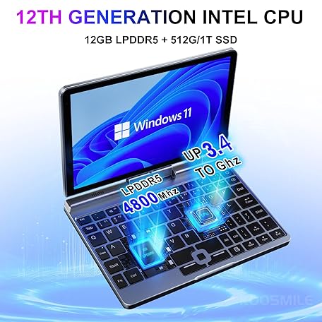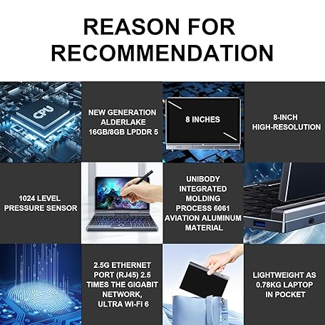 Thông tin sản phẩm Mini Laptop 8 inch HD Touchscreen Portable 2 in 1 Computer, Windows 11 Pro Small Gaming Laptop, N100 12 GB LPDDR5 1 TB M.2 SSD,WiFi 6,BT5.2 2 MP Camera,G-Sensor,HDMI,Type C
