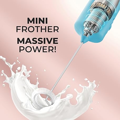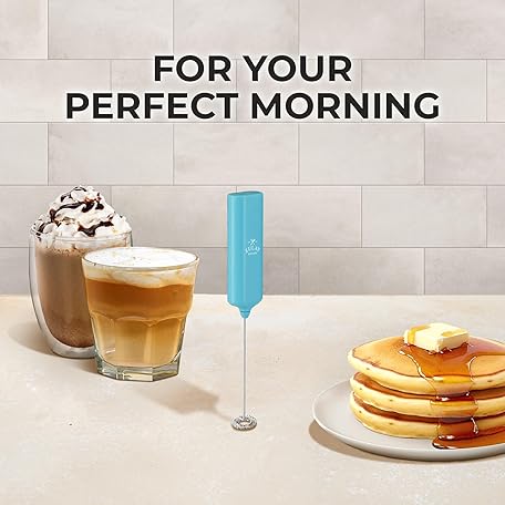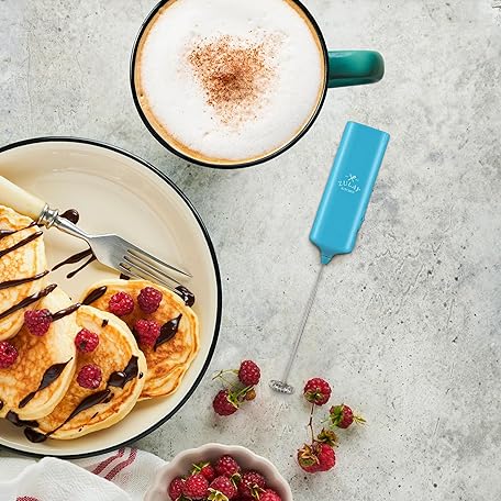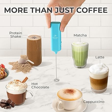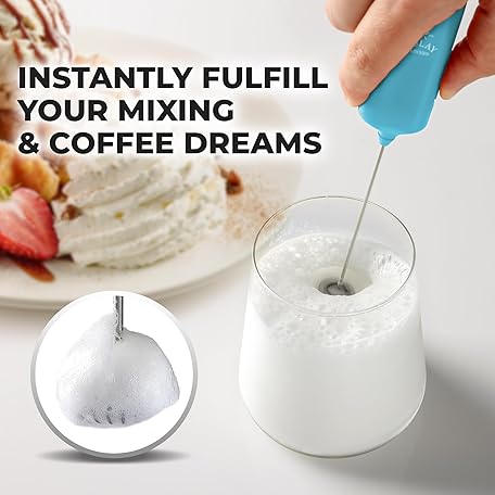 Thông tin sản phẩm Mini & Mighty Milk Frother Wand – Powerful Handheld Coffee Frother, Battery Operated Drink Mixer – Compact Pocket Size – Detachable Whisk for Latte, Cappuccino, Matcha, Hot Chocolate – Sky Blue