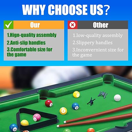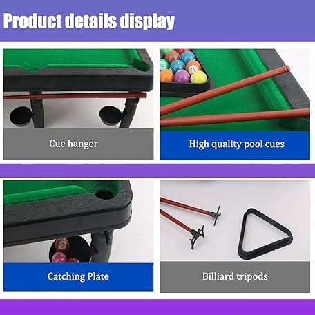 • Mini Pool Table – 21‘’ Portable Billiards Game Table for Kids & Adults, Desktop Billiard with Balls & Sticks, Family Game Night Gift for Boys Girls