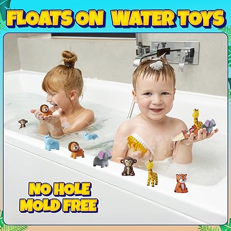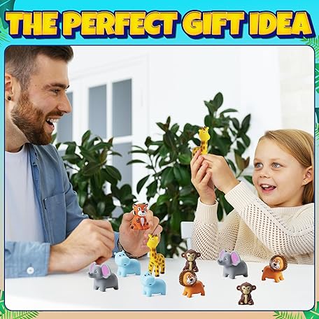 Thông tin sản phẩm Mini Zoo Animals Bath Toys - (Pack of 12) Vinyl Rubber Jungle Safari Animal Figures, Squeezable Bath Tub Toys for Kids, Baby Shower, Birthday Party Supplies, Favors, Cake Decor, Table Decorations