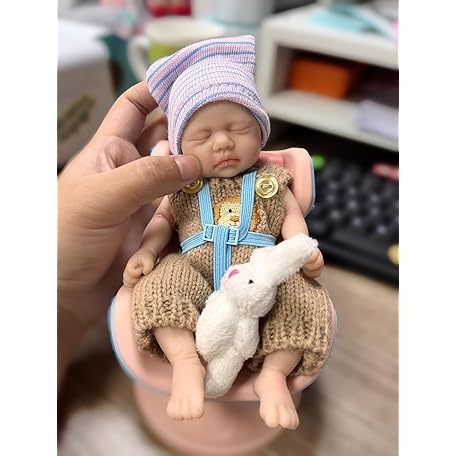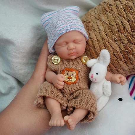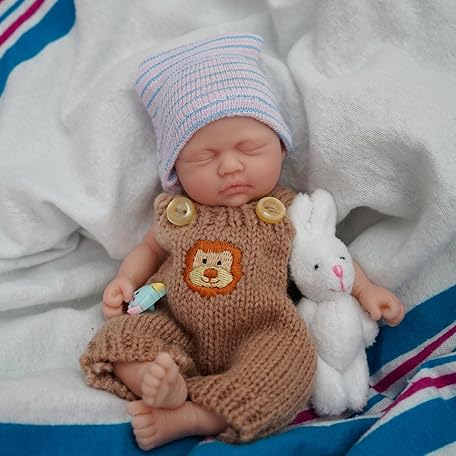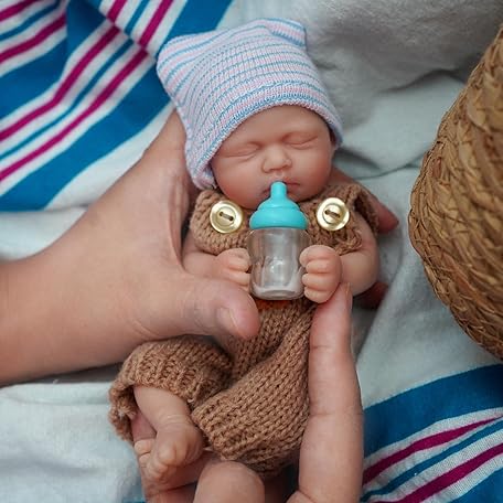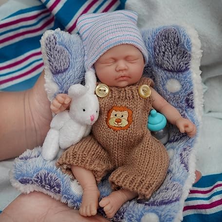 Miniature Silicone Full Body 7 Inch Realistic Newborn Doll Lifelike Sleeping Eyes Closed Baby Boy The Look Real Doll with Clothes Accessories Gift Box Set