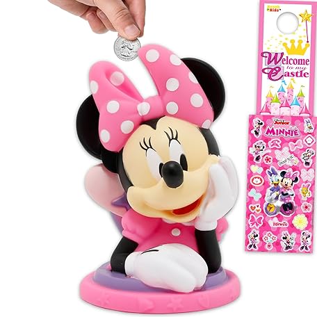 Minnie Mouse Piggy Bank Set - Bundle with 7" Minnie Coin Saving Money Currency Banknote Jar Plus Stickers, More | Disney Money Bank for Kids, Girls