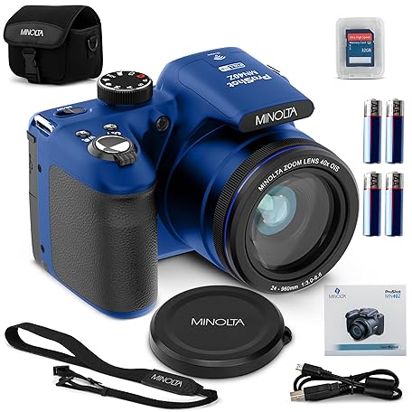 Thông tin sản phẩm Minolta MN40Z 20MP Digital Camera – 40x Optical Zoom, 1080p FHD Video, 3.0" LCD, Wi-Fi, Face/Smile/Blink Detection – Blue